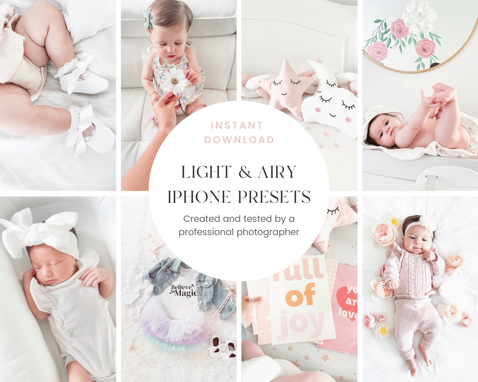 Our set of 6 iPhone Presets work with the Free Lightroom app and will help you have the light and airy images you want in just one click! I developed, tested and perfected these myself and I know you'll love them too! Also includes a PDF guide to show you how to install and use the presets!